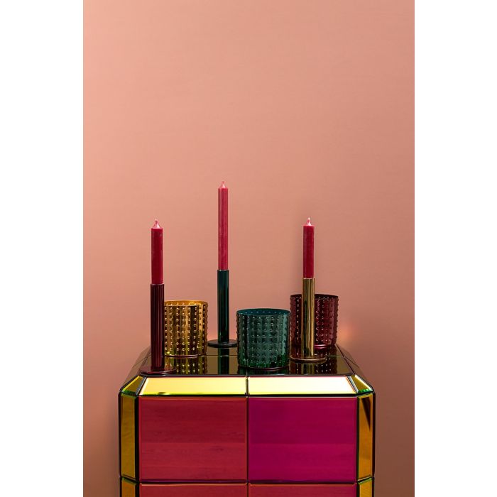 De glanzende finish geeft een modern en stijlvol accent aan je interieur. Naast plum is deze kandelaar ook verkrijgbaar in drie andere kleuren en met bijpassende waxinebakjes, zodat je eenvoudig een compleet setje kunt samenstellen.