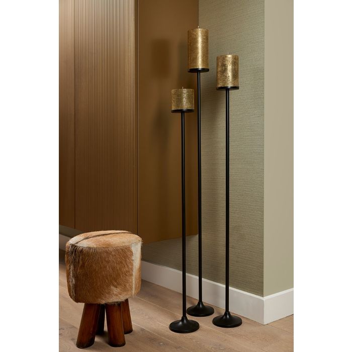 Onah; set v 3 staande stompkaars kandelaren zwart 100/110/120 cm