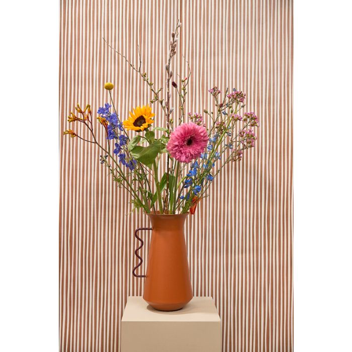 Mooie grote vaas 30 cm hoog, in een lichte terra tint met een speels oortje in de kleur Plum.