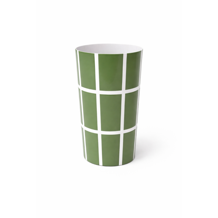 Leuke vaas met een groen tegelpatroon, helemaal on trend op dit moment. Met een hoogte van 20 cm en een diameter van 9 cm is het een compact maar opvallend item.